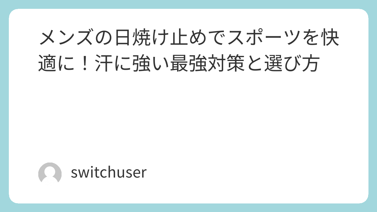 肌を守ることは、攻めのプレーを支える土台となります。ぜひ、あなたのスポーツライフに最適な一本を見つけ、太陽の下で思い切り体を動かす楽しさを、これまで以上に満喫してください。